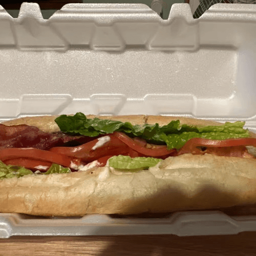 Greek-inspired BLT sub with choice of toasted or not. Selection of condiments including mayo, mustard, and various sauces like BBQ, honey mustard, and teriyaki