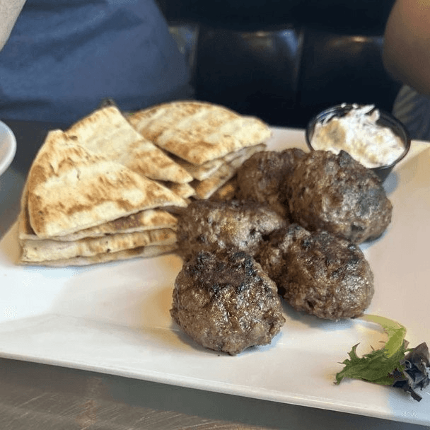 Keftedes (Greek Meatballs), loukaniko (Greek sausage), gyro, chicken, lamb chops, Greek souvlaki