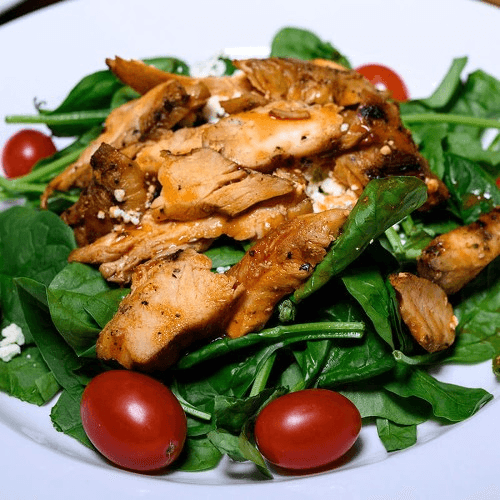 Grilled chicken atop a bed of crisp greens. Choice of dressing: house specialties, classic favorites, or simple oil & vinegar