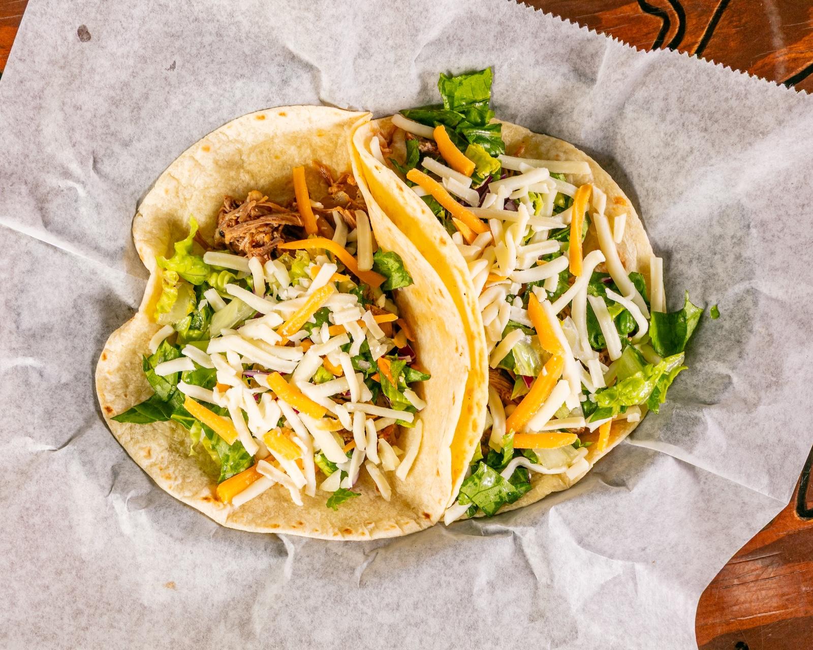 One each of steak, grilled chicken, chorizo, carnitas, birria, al pastor, chicharrón taco, topped with cilantro and onions. served with grilled onions, guacamole salsa and tomatillo salsa.