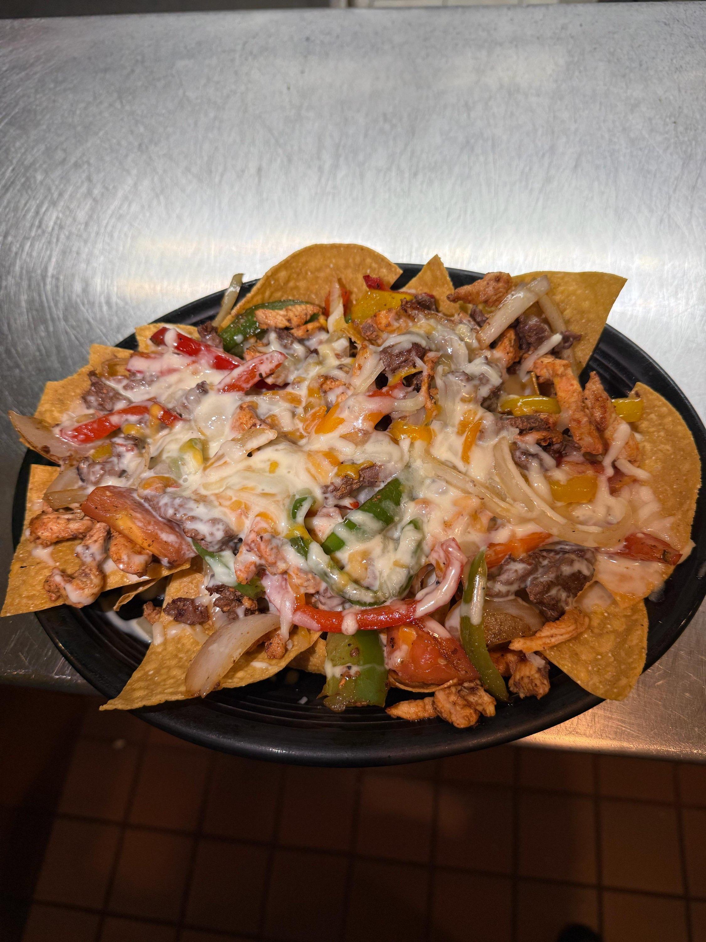 Filled with steak, pico de gallo, french fries, cheese, guacamole, sour cream & salsa verde.
